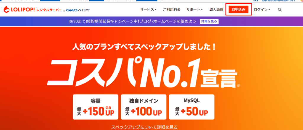 ①ロリポップのサイトにアクセスして申し込みを開始する