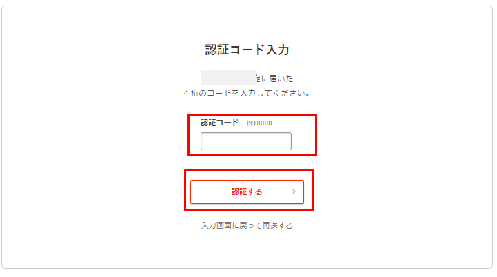 届いた認証コードを入力して「認証する」をクリックします。