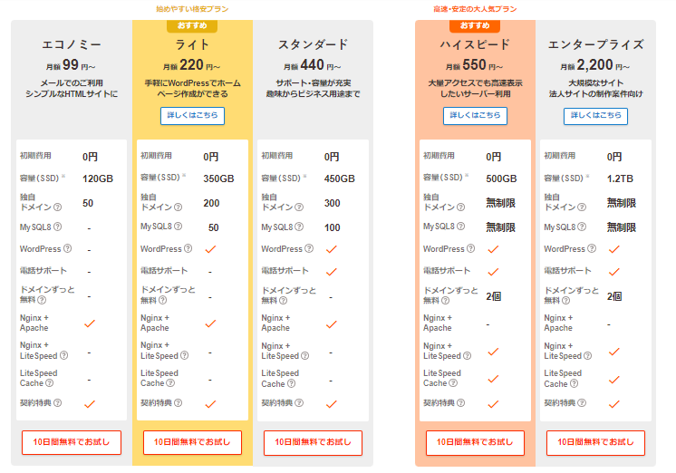 費用とスペックを比較して、自分のニーズに合ったプランを選ぶことをおすすめします。
