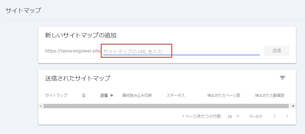 「新しいサイトマップの追加」に、先ほど確認したサイトマップのファイル名を入力して「送信」ボタンをクリックします。