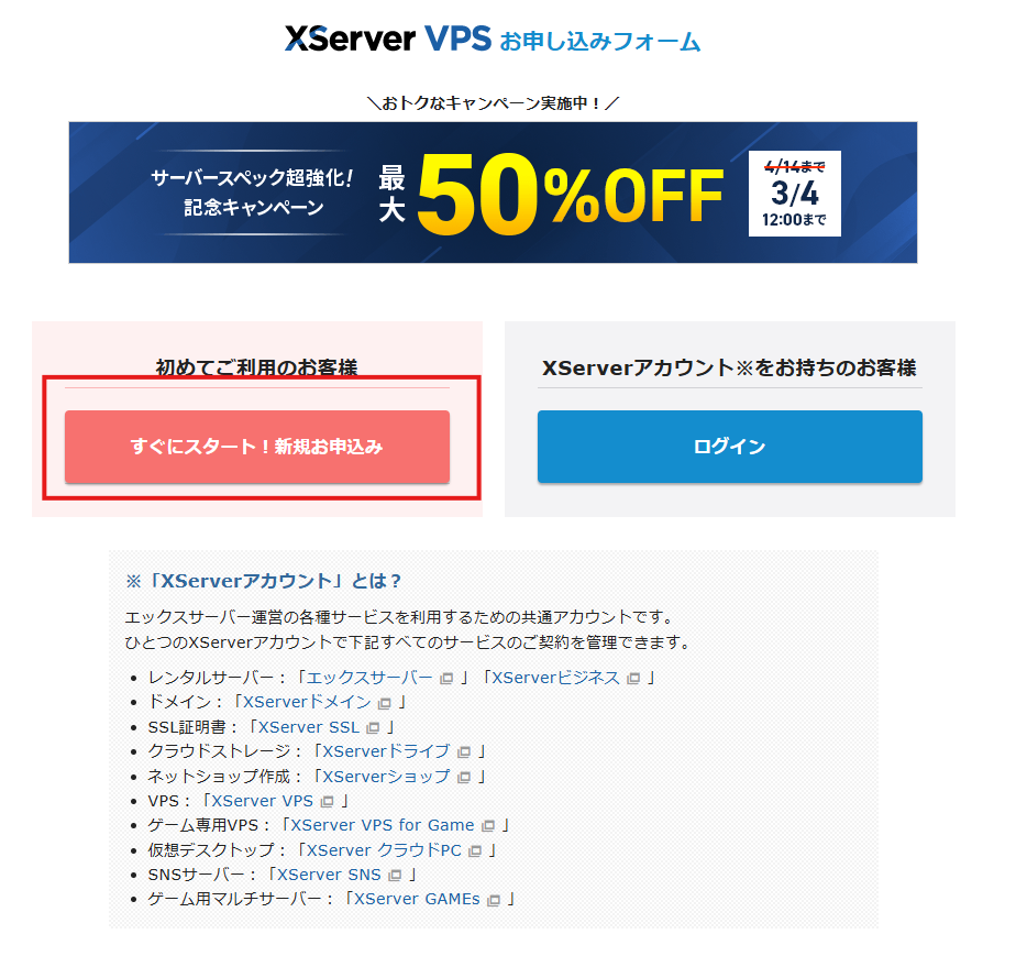 まずはXServer VPS に申し込んでサーバーを開設しましょう。