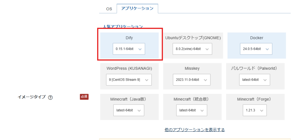 - オペレーティングシステムやアプリケーションの選択肢が豊富で、Webサイト運用、開発環境構築、AIアプリ(例:Dify)の稼働など多彩な用途に対応