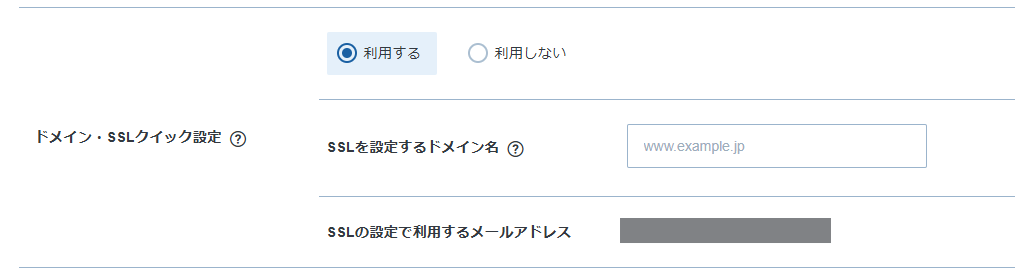 独自ドメインを取得している場合は、ドメイン・SSLクイック設定でドメイン名を設定します。