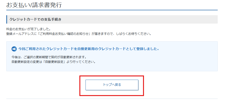 ⑯支払いが完了したら「トップへ戻る」を選択します。