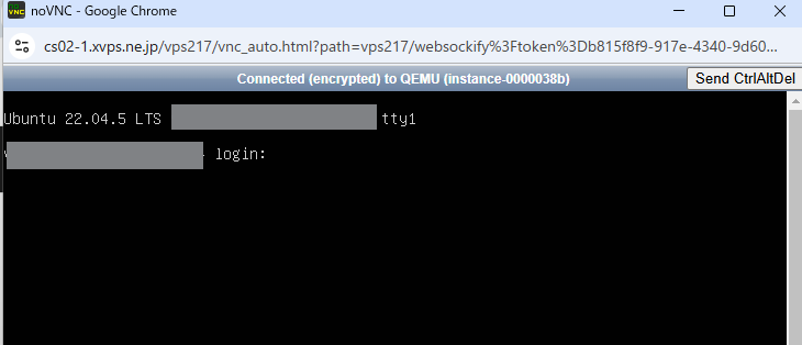 ②ログインユーザ名はroot、パスワードはXSever VPS契約時に設定した値を入力してログインします