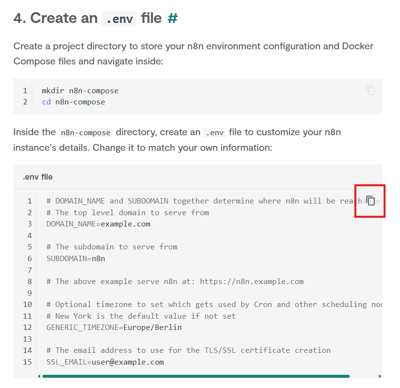 ③n8n公式サイトにある.envファイルをコピーします。