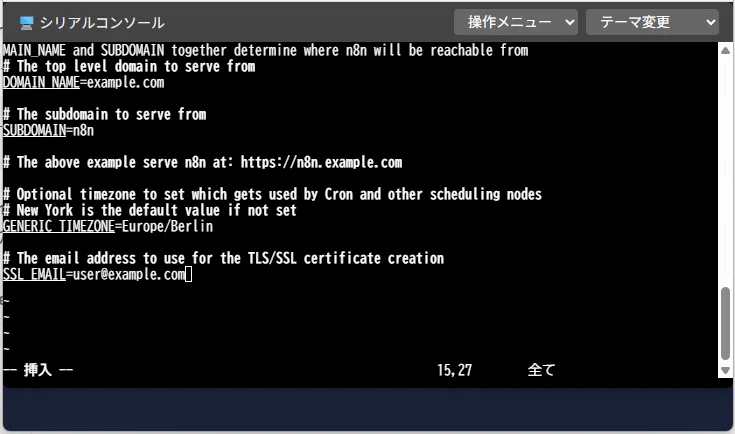 n8nの設定ファイルを作成したときと同様に、[Shift][Insert]コマンドを使って貼り付けしてください。